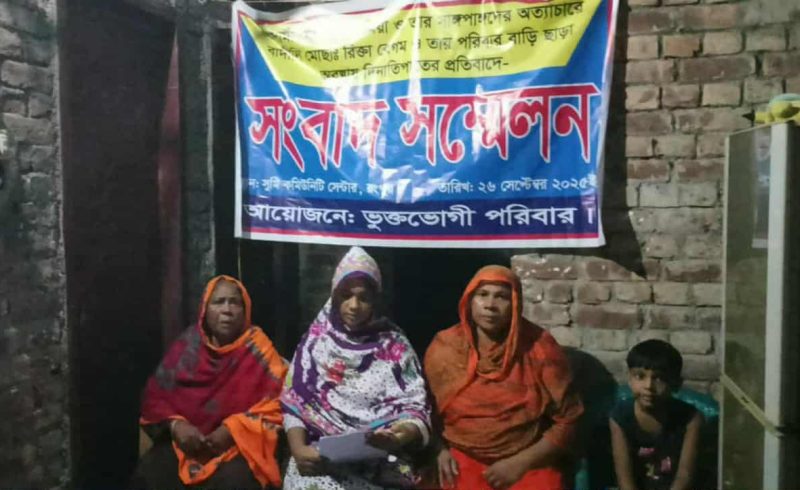 রংপুরে হাজির হাট থানা এলাকায় বাড়ি ভাঙচুর ও হামলার অভিযোগে রিক্তা বেগমের সংবাদ সম্মেলন