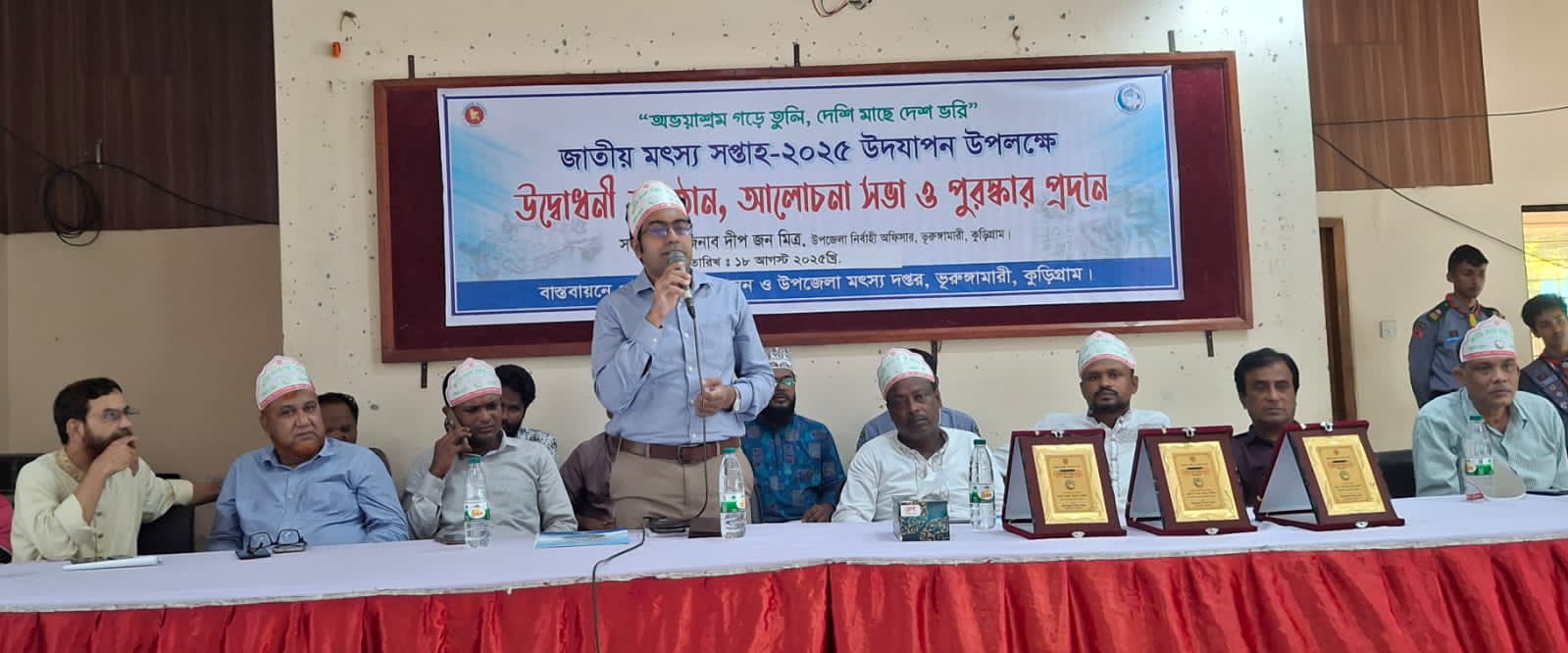 উপজেলা প্রশাসন ও মৎস্য দপ্তরের যৌথ আয়োজনে অনুষ্ঠানের শুভ সূচনা করে স্বাগত বক্তব্য রাখেন উপজেলা মৎস্য কর্মকর্তা নুরুজ্জামান খান ।
