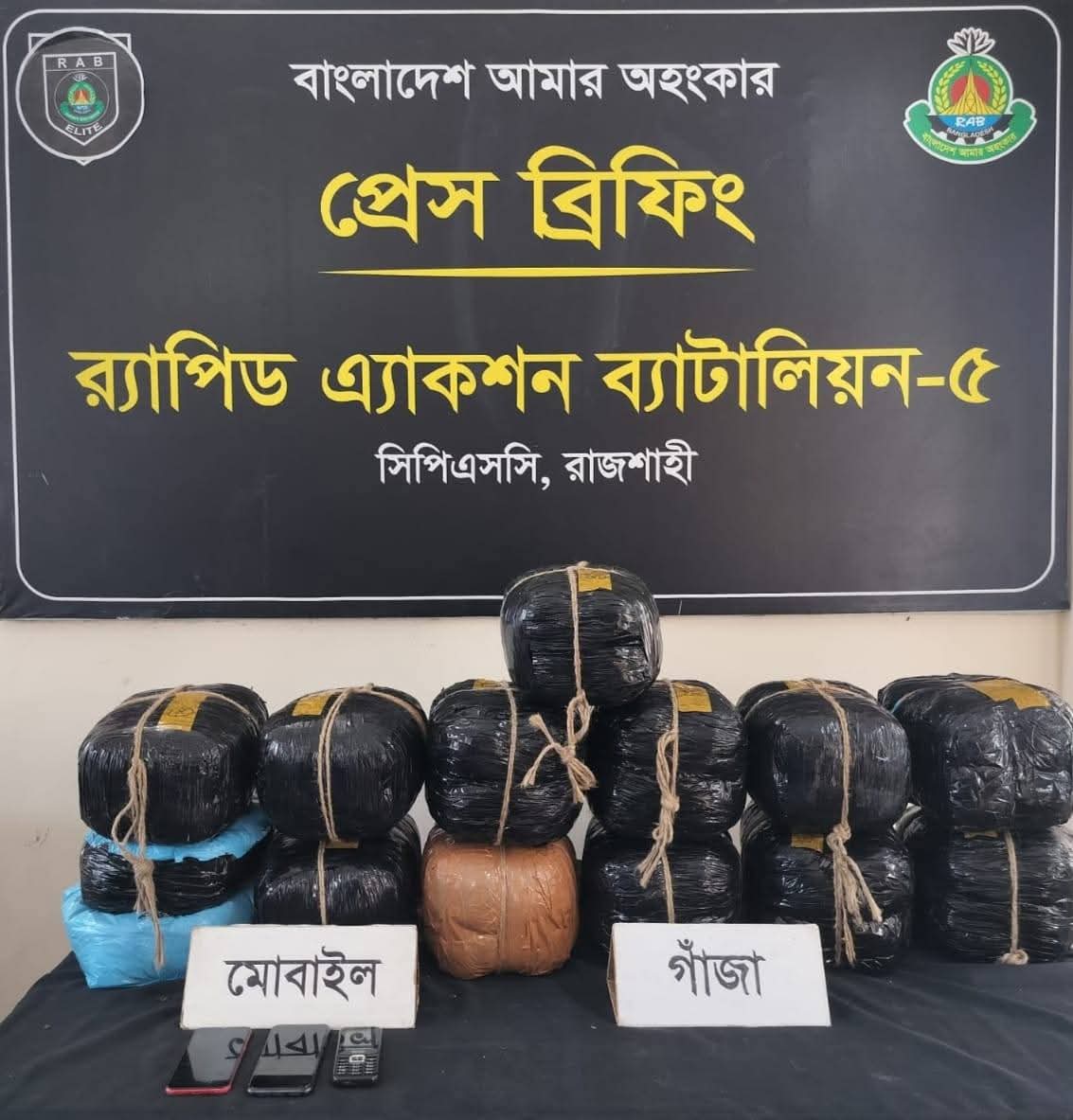 রাজশাহী কাটাখালী থেকে কুখ্যাত মহিলা মাদক ব্যবসায়ী জেসমিন ওরফে বিবিজানের বিপুল পরিমাণ গাঁজার চালান সহ ০৩ জন মাদক ব্যবসায়ীকে গ্রেফতার করেছে র্যাব-৫
