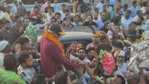 নেতা-কর্মীরা ফুলের তোড়া, ব্যানার এবং স্লোগানের মাধ্যমে তাঁদের প্রিয় প্রার্থীকে স্বাগত জানান।