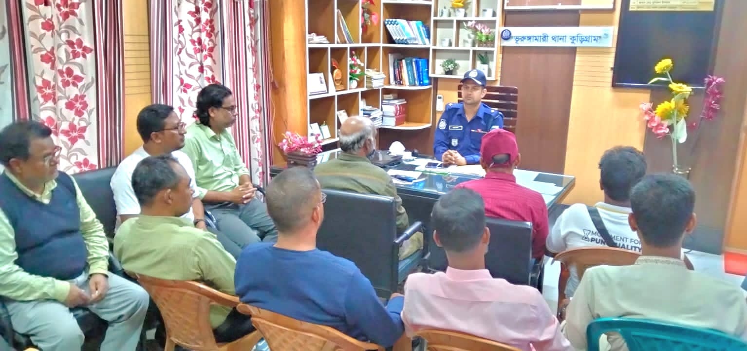 সিনিয়র স্টাফ রিপোর্টারঃ কুড়িগ্রামের ভুরুঙ্গামারী থানার অফিসার ইনচার্জকে জড়িয়ে সামাজিক যোগাযোগমাধ্যমসহ বিভিন্ন অনলাইন পোর্টালে প্রাচরিত বিভিন্ন অপপ্রচার ও বিভ্রান্তিকর সংবাদ সম্পর্কে প্রকৃত ঘটনা জানিয়ে প্রেসব্রিফিং করেছেন ওসি আল হেলাল মাহমুদ। বৃহস্পতিবার (২০ নভেম্বর) বিকালে ভূরুঙ্গামারী থানায় আয়োজিত সংবাদ সম্মেলনে ওসি জানান, ভুরুঙ্গামারীর একাধিক চাঞ্চল্যকর মামলার এজাহারনামীয় আসামি আনোয়ার হোসেন আরিফ (৩৪) কখনো রাজনৈতিক পরিচয় ও কখনো সাংবাদিক পরিচয় ব্যবহার করে তার সহযোগীদের মাধ্যমে উদ্দেশ্য প্রণোদিতভাবে চাঁদাবাজি, সরকারি কাজে বাধা ও মাদক ব্যবসা, অপহরণ, জুলাই গণঅভ্যুথ্যানে ছাত্রজনতার উপর হামলা এবং সর্বশেষ নাশকতার পরিকল্পনা সহ চারটি মামলা চলমান রয়েছে। এসকল মামলায় তাকে গ্রেপ্তার করায় ওসি সহ ভুরুঙ্গামারী থানা পুলিশের বিরুদ্ধে তার সহযোগী একটি চক্র থানা পুলিশ ও ওসির বিরুদ্ধে সামাজিক যোগাযোগ মাধ্যম ও অনলাইন পোর্টালে মিথ্য ভিত্তিহীন ও মানহানীকর সংবাদ প্রকাশ করে আসছে। যা জনমনে পুলিশ সম্পর্কে বিভ্রান্তি ছড়াচ্ছে। প্রেস ব্রিফিংয়ে তিনি আরও জানান, গত ১৪ নভেম্বর ‘অনলাইন প্রতিদিনের কাগজ’র সাংবাদিক পরিচয়ে খায়রুল আলম রফিক ফোনে মামলার বিষয়ে তথ্য জানতে চাইলে তিনি তা অবহিত করেন। পরে ওই কলটি কৌশলে রেকর্ড করে বিভ্রান্তিকর শিরোনামে সামাজিক যোগাযোগমাধ্যমে প্রচার করা হয়। এতে থানার কর্মকান্ড-কে প্রশ্নবিদ্ধ করার অপচেষ্টা করা হয়েছে বলে তিনি মন্তব্য করেন। ভুরুঙ্গামারী উপজেলা বিএনপির সদস্য সচিব শহিদুল ইসলাম জানান, কথিত সাংবাদিক আনোয়ার এক প্রতিবন্ধী তরুণকে অপহরণ করে চাঁদা দাবি করেছিল। সে আওয়ামীলীগের রাজনীতির সাথে সম্পৃক্ত। আনোয়ার হোসেন আরিফ ভূরুঙ্গামারী উপজেলা আওয়ামী মৎস্যজীবী লীগের যুগ্ম আহ্বায়ক হিসেবে পরিচয় দিয়ে থাকেন। উপজেলা জামায়াত ইসলামের আমীর আনোয়ার হোসেন জানান, আমার জানা মতে ওসি আল হেলাল মাহমুদ ভালো মানুষ। মামলা বাণিজ্যের সাথে তার কোনো সংশ্লিষ্টতা নেই।জাতীয় নাগরিক পার্টি (এনসিপি)'র উপজেলা আহ্বায়ক মাহফুজুল ইসলাম কিরণ বলেন, ওসি সাহেব জনবান্ধব মানুষ, তিনি পক্ষপাতিত্ব করেন না। আমরা তার কাজে সন্তুষ্ট। ইসলামী আন্দোলন বাংলাদেশের উপজেলা সাধারণ সম্পাদক এস এম মনিরুজ্জামান বলেন, ওসি সাহেব যথেষ্ঠ আন্তরিক মানুষ। উনার বিরুদ্ধে কখনও কারো কাছে কিছু শুনিনি। কেউ অভিযোগ করলে তিনি আইন অনুযায়ী ব্যবস্থা নিবেন এটাই স্বাভাবিক। এখানে ব্যাক্তিগত আক্রোশের কিছু নেই। ওসি আল হেলাল মাহমুদ অভিযোগ করেন, জেলহাজতে থাকা আনোয়ার ও তার পৃষ্ঠপোষকরা পুলিশি কার্যক্রমকে বিতর্কিত করার জন্য কয়েকজন বিতর্কিত সাংবাদিককে ব্যবহার
