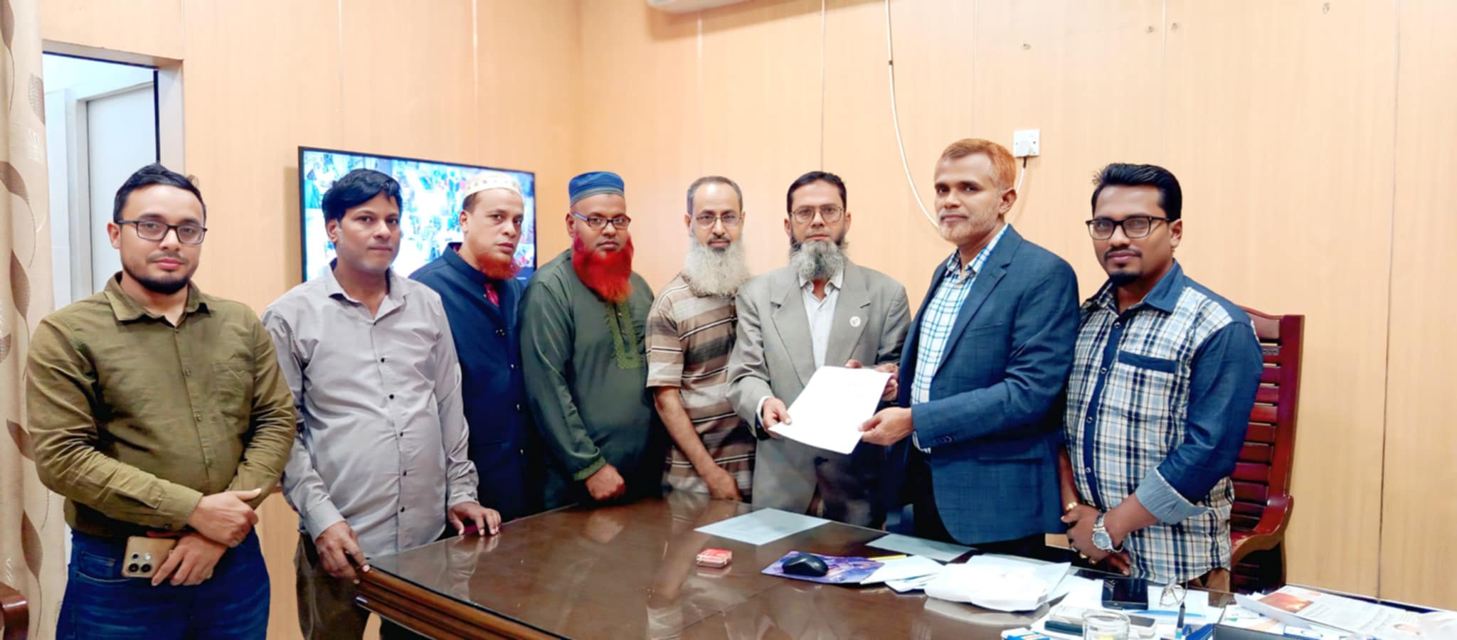 Providing memorandum to technologists with Deputy Director of Mohammad Ali Hospital demanding implementation of 10th grade