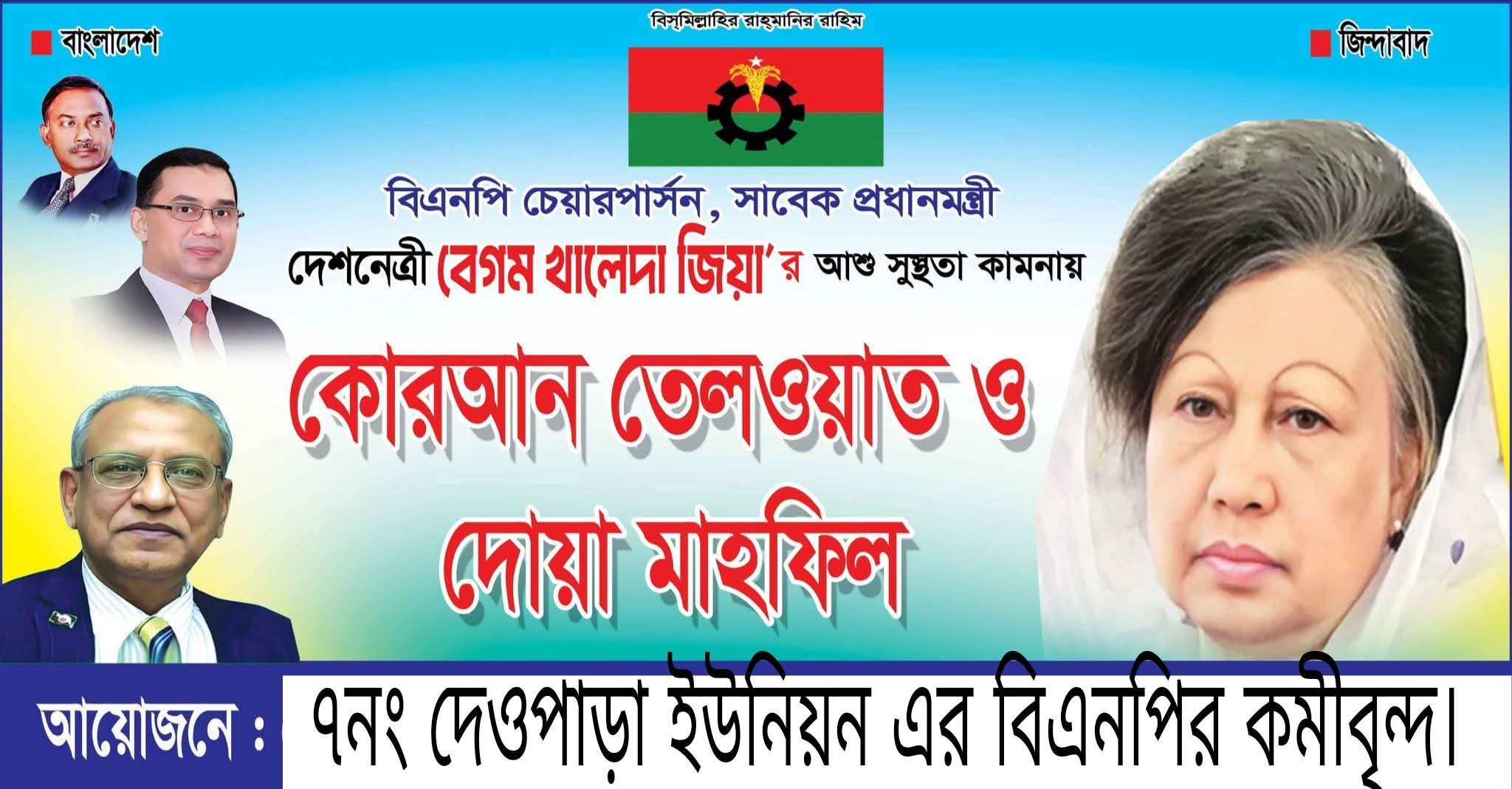উক্ত কোরআন তেলাওয়াত ও দোয়া মাহফিল এর আয়োজন করেন ৭নং দেওপাড়া ইউনিয়নের বিএনপির কর্মীরা।