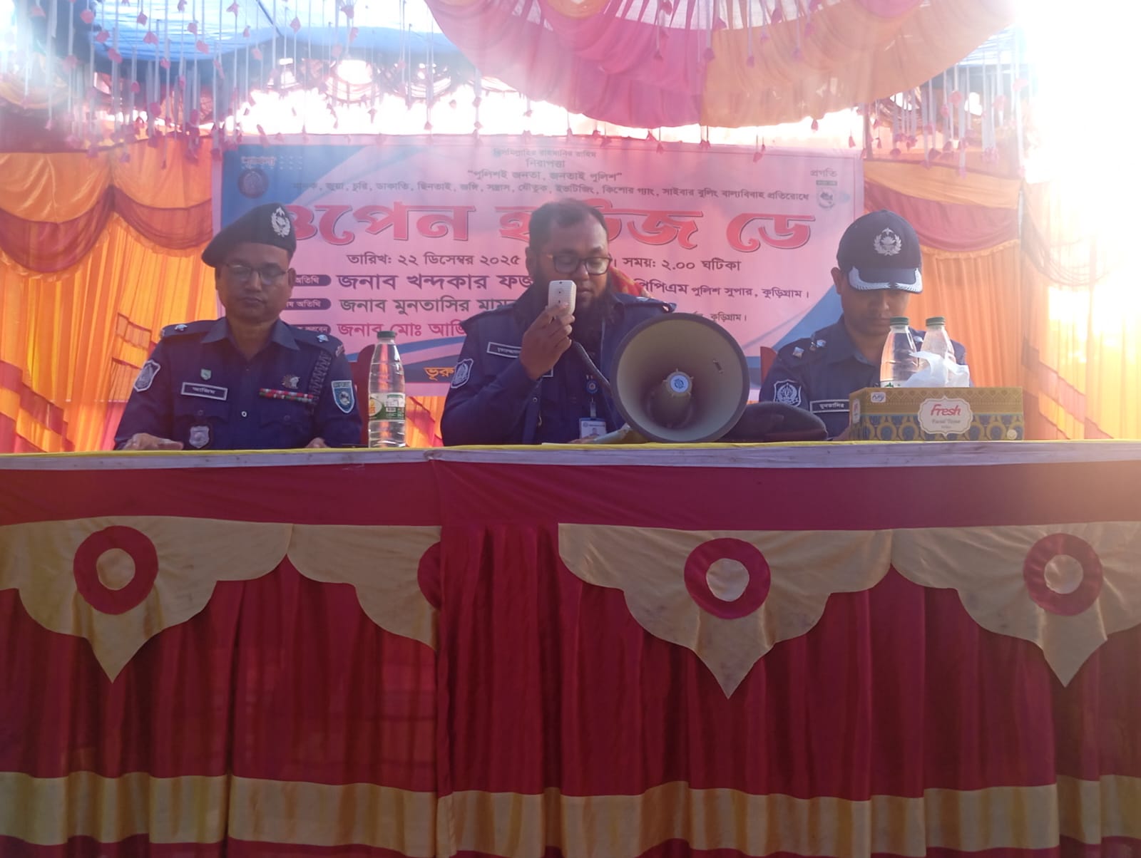 প্রধান অতিথি অতিরিক্ত পুলিশ সুপার এ এস এম মুক্তারুজ্জামান বলেন, আসন্ন ত্রয়োদশ জাতীয় সংসদ নির্বাচনকে সামনে রেখে আইনশৃঙ্খলা পরিস্থিতি স্বাভাবিক ও শান্তিপূর্ণ রাখতে পুলিশ সর্বোচ্চ সতর্ক অবস্থানে রয়েছে। নির্বাচন যেন অবাধ, সুষ্ঠু ও শান্তিপূর্ণভাবে অনুষ্ঠিত হয়, সে লক্ষ্যে পুলিশ নিরপেক্ষভাবে দায়িত্ব পালন করবে।