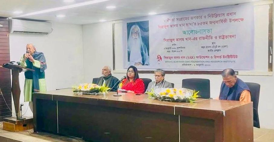 স্বাধীনতা সংগ্রামের অন্যতম রুপকার, মুক্তিযুদ্ধের অন্যতম সংগঠক ও নিউক্লিয়াস প্রধান সিরাজুল আলম খানের ৮৫তম জন্মবার্ষিকী উপলক্ষে বৃহস্পতিবার (৮ জানুয়ারি) বিকেলে ঢাকা জাতীয় প্রেসক্লাবের জহুর হোসেন চৌধুরী মিলনায়তনে ‘সিরাজুল আলম খানের রাজনীতি ও রাষ্ট্রভাবনা’ শীর্ষক এক আলোচনা সভার আয়োজন করে সিরাজুল আলম খান (এসএকে) ফাউন্ডেশন ও রিসার্চ ইনস্টিটিউট। খবর আইবিএননিউজ ।