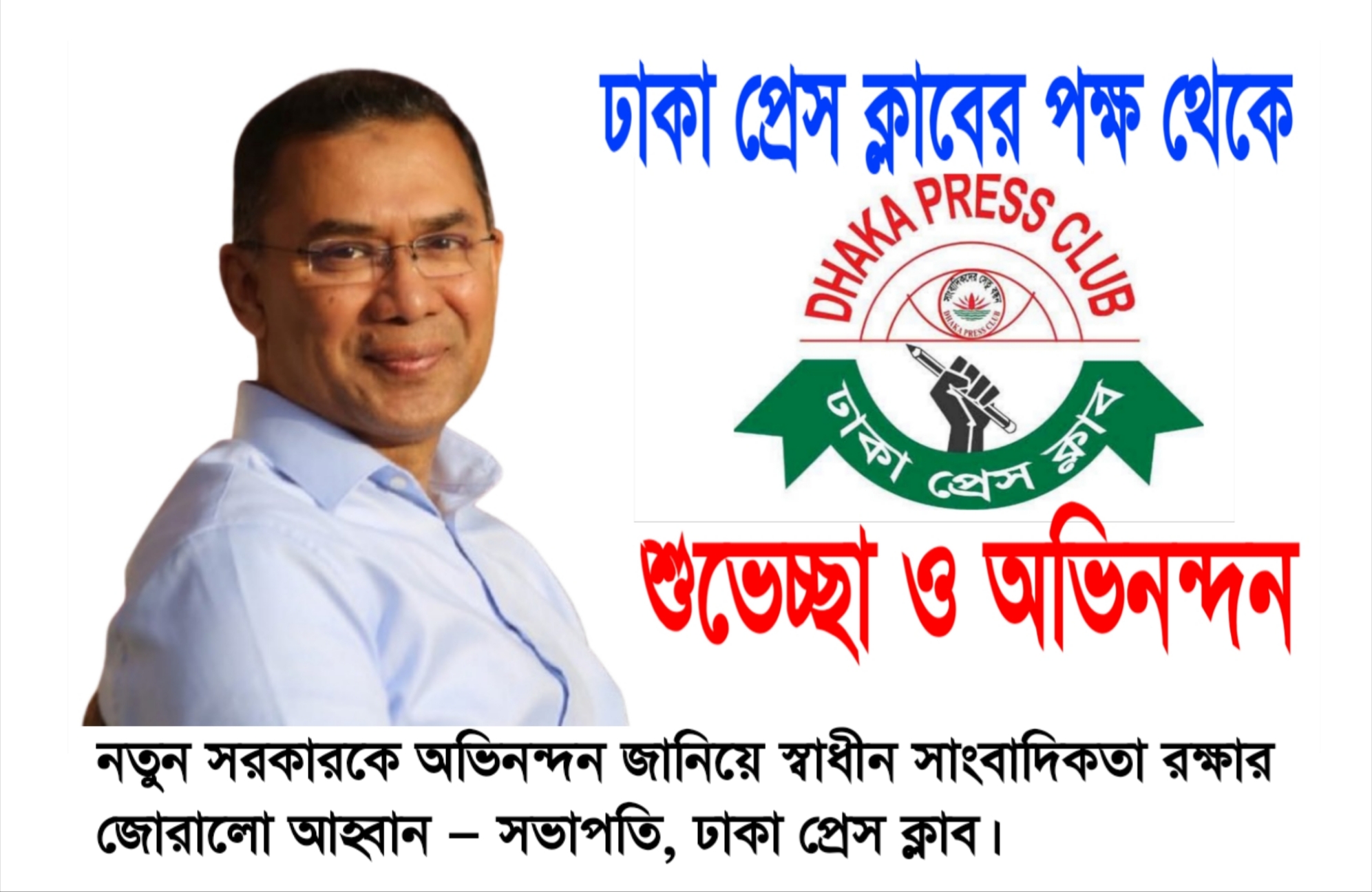 সবশেষে ঢাকা প্রেস ক্লাব আশা প্রকাশ করে, নতুন সরকার সাংবাদিক সমাজের আস্থা, মর্যাদা ও অধিকার সমুন্নত রাখবে এবং একটি গণমাধ্যমবান্ধব, স্বচ্ছ ও জবাবদিহিমূলক রাষ্ট্রব্যবস্থা গড়ে তুলতে কার্যকর উদ্যোগ গ্রহণ করবে।
