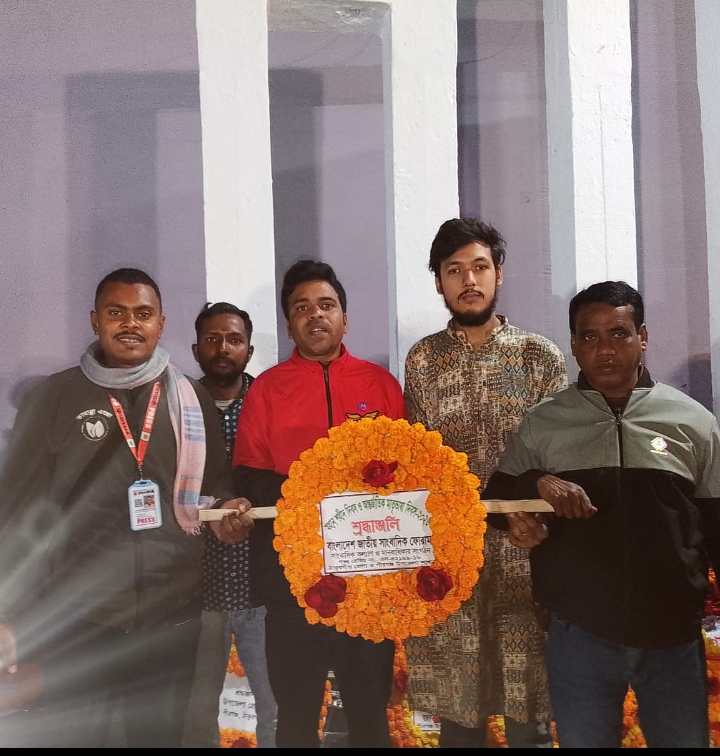 শনিবার (২১ ফেব্রুয়ারি) রাত ১২টা ১ মিনিটে ঠাকুর গাঁও পীর গঞ্জ উপজেলা কেন্দ্রীয় শহীদ মিনারে ভাষা শহীদদের স্মরণে পুষ্পস্তবক অর্পণ করেন বাংলাদেশ জাতীয় সাংবাদিক ফোরাম ঠাকুর গাঁও জেলা ও পীর গঞ্জ উপজেলা সভাপতি সাংবাদিক মোঃ মাহফুজুর রহমান সাধারণ সম্পাদক মো মোশারফ হোসেন দপ্তর সম্পাদক রেজওয়ানুল ফেরদৌস রিয়াদ সদস্য মোঃ আবু বক্কর সিদ্দিক মোঃ মনিরুল ইসলাম সুজন । বাংলাদেশ জাতীয় সাংবাদিক ফোরাম গভঃ রেজি নং এস ৪২১৯৯/১৮ সাংবাদিক কল্যাণ ও মানবাধিকার সংগঠন ঠাকুর গাঁও জেলা ও পীর গঞ্জ উপজেলা শাখায় পক্ষ থেকে শহীদদের প্রতি গভীর শ্রদ্ধা নিবেদন করেন।