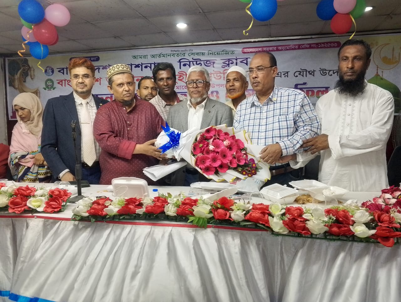 বাংলাদেশ ন্যাশনাল নিউজ ক্লাব ও বাংলাদেশ ভূমিহীন ও গৃহহীন হাউজিং লিমিটেড-এর যৌথ উদ্যোগে পবিত্র ১৩ই রমজান, ৩ মার্চ (মঙ্গলবার) রাজধানীর বাংলাদেশ শিশু কল্যাণ পরিষদ মিলনায়তনে বিকাল ৩টায় এক আলোচনা সভা, ইফতার ও দোয়া মাহফিল অনুষ্ঠিত হয়। অনুষ্ঠানের শুরুতে পবিত্র কুরআন তেলওয়াত করেন মিছবাহ উদ্দীন শাহ জুয়েল। অনুষ্ঠানে সভাপতিত্ব করেন ঢাকা প্রেস ক্লাব ও আন্তর্জাতিক প্রেস ক্লাবের সভাপতি আওরঙ্গজেব কামাল। তিনি এ সময় বলেন,আমরা দরিদ্র মানুষের অধিকার আদায়ের জন্য সব সময় কাজ করছি। সাংবাদিকদের মর্যাদা ও নিরাপত্তা রক্ষায় ঢাকা প্রেসক্লাব সবসময় নির্যাতিত সাংবাদিকদের পাশে রয়েছে। পাশাপাশি সমাজের দরিদ্র ও অসহায় মানুষের কল্যাণে কাজ করে যাচ্ছে এবং বাংলাদেশ ভূমিহীন ও গৃহহীন হাউজিং লিমিটেডের মানবিক কার্যক্রমে সর্বাত্মক সহযোগিতা অব্যাহত থাকবে।এ জন্য প্রয়োজন সরকারের সহযোগীতা। অনুষ্ঠানে প্রধান অতিথি হিসেবে আরও উপস্থিত ছিলেন ইসলামী ঐক্য মহাজোট-এর প্রধান সমন্বয়কারী, বাংলাদেশ ন্যাশনাল ডেমোক্রেটিক পার্টি-এর চেয়ারম্যান, সাউথ এশিয়ান বিজনেস ফ্রম-এর চেয়ারম্যান, আন্তর্জাতিক মানবাধিকার ও গণমাধ্যম কেন্দ্র-এর প্রধান উপদেষ্টা ও দৈনিক ফলাফল-এর সম্পাদক শেখ মুস্তাফিজুর রহমান। তিনি বলেন, বর্তমান সরকার সমাজের পিছিয়ে পড়া ও দরিদ্র জনগোষ্ঠীর ভাগ্যোন্নয়নে নিরলসভাবে কাজ করে যাচ্ছেন বাংলাদেশ ভুমিহীন ও গৃহহীন হাউজিং লিঃ। তাদের এ উদ্যগকে আমরা স্বাগত জানই। সরকারের নির্বাচনী ইশতেহার অনুযায়ী ফ্যামিলি কার্ড ও কৃষি কার্ড বাস্তবায়নের মাধ্যমে তৃণমূল মানুষের জীবনমান উন্নয়নে কার্যকর পদক্ষেপ গ্রহণ করেছে। ফলে সরকারের কাছে দাবী যাহাতে বাংলাদেশ ভুমিহীন ও গৃহহীন হাউজিং লিঃ এর সদস্যরা সর্ব প্রথমে এই সুযোগ পাই। অনুষ্ঠানে প্রধান আলোচক হিসাবে বক্তব্য রাখেন জাতীয়তাবাদী শ্রমিক দল রাজশাহী জেলা শাখার সহ-সভাপতি সংগঠনের উপদেষ্ঠা মোঃ ওয়াদুদ-উল-মো:তাকাদ্দাস কাজল । তিনি বলেন, আমি এই সংগঠনের সাথে রয়েছি এবং যে ভাবে হোক তাদের সকল প্রকার সহযোগীতা করতে মাননীয় প্রধান মন্ত্রীর কাছে ভূমি মন্ত্রীর মাধ্যমে সুপারিশ করবো। অনুষ্ঠান উদ্ধোধন করেন বাংলাদেশ ক্রাইম রিপোর্টার্স অ্যাসোসিয়েশনের চেয়ারম্যান ও এফবিওজের মহাসচিব এস এম হানিফ আলী। অনুষ্ঠানে বিশেস অতিথি হিসাবে উপস্থিত ছিলেন,দৈনিক বাংলার ডাক পত্রিকার প্রকাশক ও সম্পাদক অ্যাডভোকেট মোঃ মনোয়ার হোসেন ছিদ্দিকী,দৈনিক মানবাধিকার প্রতিদিন পত্রিকার প্রকাশক ও সম্পাদক মোঃ মো: আবুল হাসান, লায়ন্স ক্লাব ঢাকা ক্যাপিটাল গার্ডেন এর সভাপতি আলহাজ্ব লায়ন খান আখতারুজ্জামান, দুর্নীতি প্রতিরোধ ফাউন্ডেশন চেয়ারম্যান ও দৈনিক দূরনী