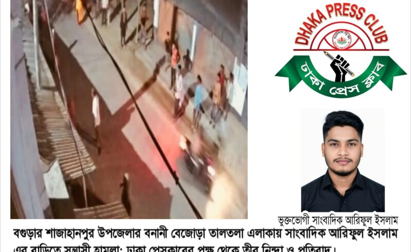 স্টাফ রিপোর্টার: সংবাদ প্রকাশের জেরে বগুড়া জেলার শাজাহানপুর উপজেলার বনানী বেজোড়া তালতলা সাংবাদিক আরিফুল ইসলামের বাড়িতে সন্ত্রাসী হামলার ঘটনায় গভীর উদ্বেগ প্রকাশ করেছে ঢাকা প্রেসক্লাব।
