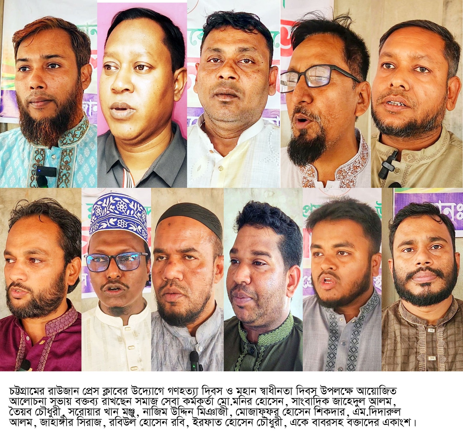 সভায় প্রধান অতিথি হিসেবে বক্তব্য রাখেন রাউজান উপজেলা সমাজসেবা কর্মকর্তা মো. মনির হোসেন। তিনি বলেন, “২৫ মার্চের নির্মমতা আমাদের জাতিকে চূড়ান্ত স্বাধীনতার সংগ্রামে উদ্বুদ্ধ করেছিল। এরই ধারাবাহিকতায় দীর্ঘ নয় মাসের রক্তক্ষয়ী যুদ্ধের মাধ্যমে আমরা অর্জন করেছি আমাদের কাঙ্ক্ষিত স্বাধীনতা।” রাউজান প্রেস ক্লাবের সভাপতি কাজী সরোয়ার খান মনজুর সভাপতিত্বে অনুষ্ঠানে বিশেষ অতিথি হিসেবে উপস্থিত ছিলেন সংগঠনের সাবেক সভাপতি জাহেদুল আলম এবং সাবেক সভাপতি ও আজীবন সদস্য তৈয়ব চৌধুরী। সংগঠনের সাধারণ সম্পাদক মোজাফফর হোসাইন শিকদার ও সহ-সাধারণ সম্পাদক রবিউল হোসেন রবির সঞ্চালনায় সভায় বক্তব্য রাখেন সিনিয়র সহ-সভাপতি নাজিম উদ্দীন মিঞাজী, সহ-সভাপতি এম. দিদারুল আলম, সহ-সভাপতি মিলন বড়ুয়া, যুগ্ম সাধারণ সম্পাদক জাহাঙ্গীর সিরাজ, সাংগঠনিক সম্পাদক ইরফাত হোসেন চৌধুরী, দপ্তর সম্পাদক এ কে বারর এবং আতিক উল্লাহ চৌধুরীসহ অন্যান্য নেতৃবৃন্দ। বক্তারা ২৫ মার্চের কালরাতের শহীদদের গভীর শ্রদ্ধার সঙ্গে স্মরণ করেন এবং মহান স্বাধীনতা যুদ্ধের চেতনা ধারণ করে দেশ গঠনে সবাইকে এগিয়ে আসার আহ্বান জানান। তারা বলেন, নতুন প্রজন্মের কাছে মুক্তিযুদ্ধের সঠিক ইতিহাস তুলে ধরা অত্যন্ত জরুরি, যাতে তারা দেশপ্রেমে উদ্বুদ্ধ হয়ে দেশের উন্নয়নে ভূমিকা রাখতে পারে।