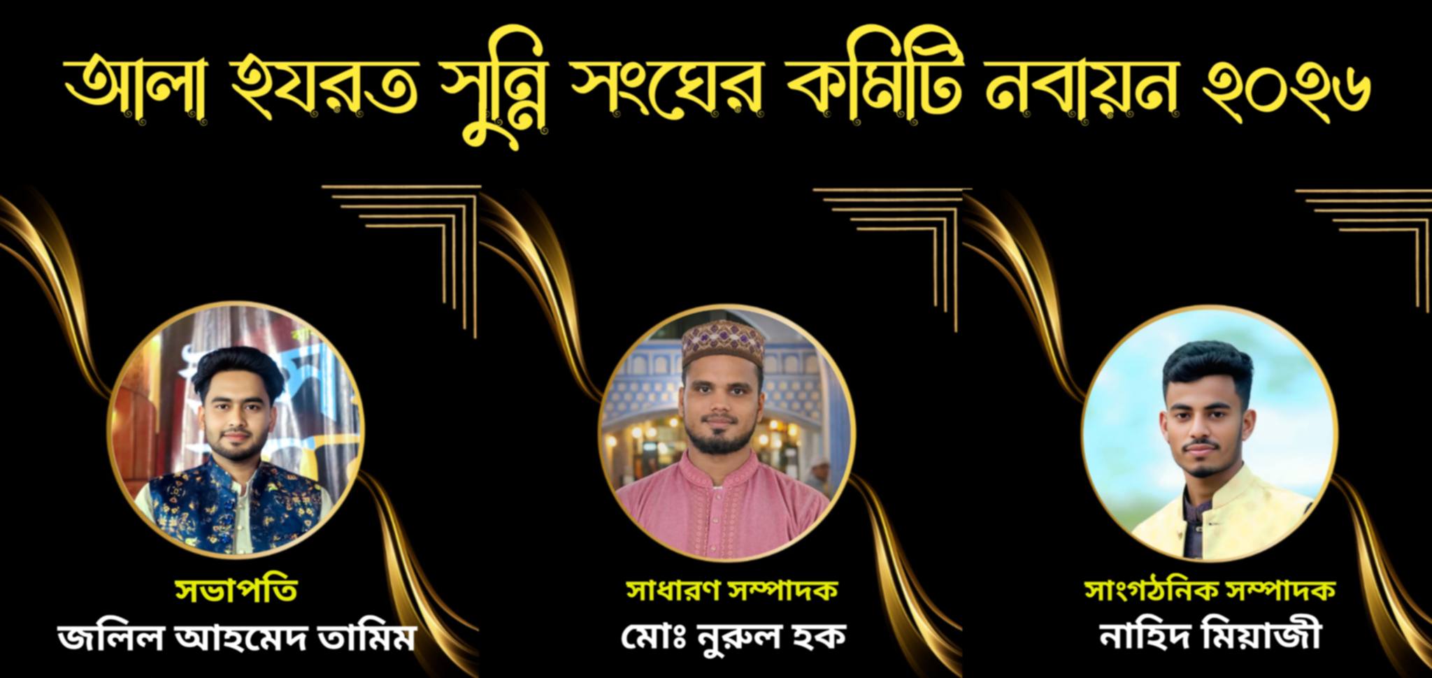 সিনিয়র সহ-সভাপতি আরশ হোসাইন ক্বাদেরী; সহ-সভাপতি জহিরুল ইসলাম সাগর, আরএস রুমান আহমেদ ও আশরাফুল ইসলাম; সহ-সাধারণ সম্পাদক তানভীর হোসেন ও মিজানুর রহমান; সহ-সাংগঠনিক সম্পাদক জসিম মুসাব্বির; অর্থ সম্পাদক মোঃ রাখাব উদ্দিন; প্রবাস কল্যাণ সম্পাদক সাইফুল ইসলাম রেজা; সহ-প্রবাস কল্যাণ সম্পাদক নাঈম আহমেদ ও মোঃ সোহেল রানা; ধর্ম বিষয়ক সম্পাদক হাফেজ হাবিবুর রহমান; সহ-ধর্ম বিষয়ক সম্পাদক ক্বারী শফিউল্লাহ ক্বাদেরী; প্রচার সম্পাদক মোঃ মোবারক হোসাইন; সহ-প্রচার সম্পাদক আলী ইসলাম; শিক্ষা বিষয়ক সম্পাদক আব্দুল মুমিন; সমাজ কল্যাণ সম্পাদক জাহাঙ্গীর আলম বিপ্লব এবং নির্বাহী সদস্য হিসেবে মাহমুদুল হাসান, ফয়সাল আহমেদ ও জিহাদ হাসান।