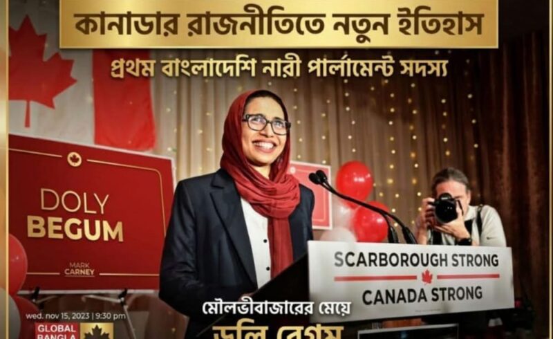 এদিকে নির্বাচনে জয়ী হওয়ার পর ডলি বেগমকে শুভেচ্ছা জানিয়েছেন কানাডার প্রধানমন্ত্রী মার্ক কার্নি। সামাজিক যোগাযোগমাধ্যম এক্সে এক পোস্টে কার্নি বলেন, স্কারবোরো সাউথওয়েস্টের নতুন এমপি হিসেবে নির্বাচিত হওয়ায় ডলি বেগমকে অভিনন্দন। ডলি তার কমিউনিটির জন্য একটি উন্নত ভবিষ্যৎ গড়তে অত্যন্ত জোরালো এবং কার্যকরভাবে লড়াই করেছেন। তার অক্লান্ত কণ্ঠস্বর এবং অভিজ্ঞতা সবার জন্য একটি শক্তিশালী ও অধিকতর ন্যায়পরায়ণ কানাডা গঠনে সহায়তা করবে।