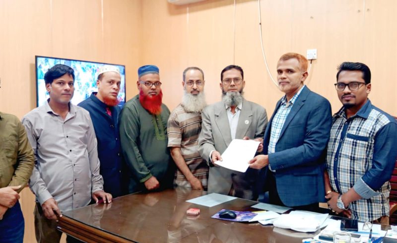 Providing memorandum to technologists with Deputy Director of Mohammad Ali Hospital demanding implementation of 10th grade