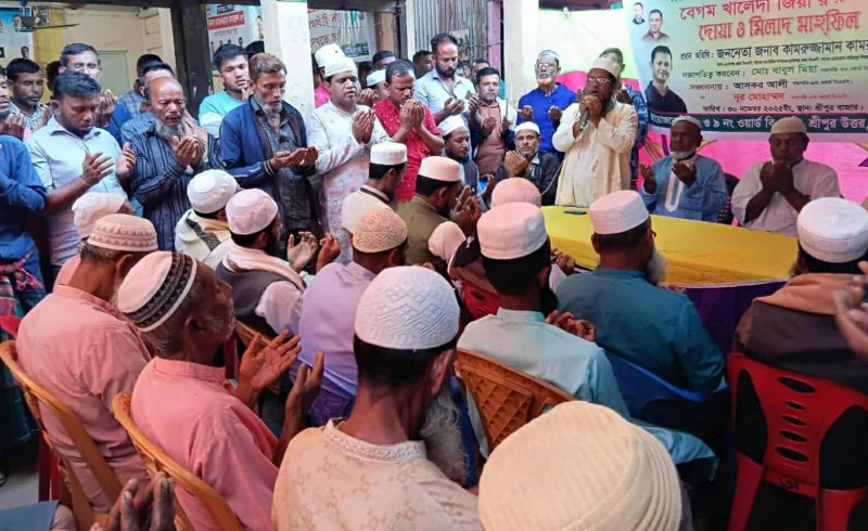 তাহিরপুর শ্রীপুর বাজারে কামরুলের পক্ষ থেকে খালেদা জিয়ার সুস্থতা কামনায় মিলাদ ও দোয়া মাহফিল অনুষ্ঠিত