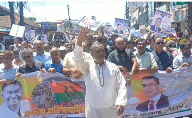 বিএনপি’র ৪৭ তম প্রতিষ্ঠা বার্ষিকী উপলক্ষে সুনামগঞ্জে এড. নুরুল ইসলাম নুরুলে নেতৃত্বে জনতার মিছিল